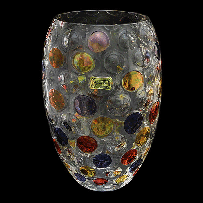 Вазы для цветов и фруктов → Ваза прозрачная "Горох цветной" 20,5 см